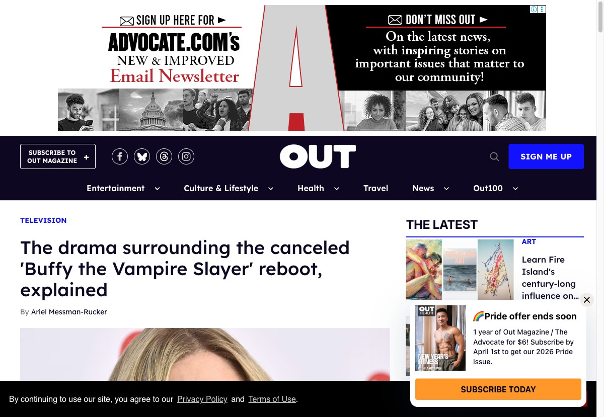 가장 유명한 콘텐츠는 매년 발표하는 Out100 이에요. 그 해 가장 영향력 있는 LGBTQ+ 인물 100명을 선정하는 리스트인데, 엔터테인먼트, 정치, 스포츠 등 다양한 분야의 퀴어 인물들을 조명해요.
