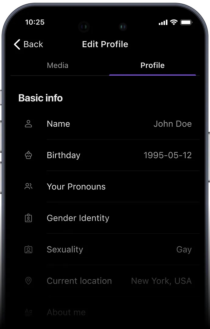 프로필 설정 이 꽤 세밀해요. 성별 정체성, 성적 지향, 대명사까지 다양하게 설정할 수 있어서 자신을 있는 그대로 표현할 수 있죠.